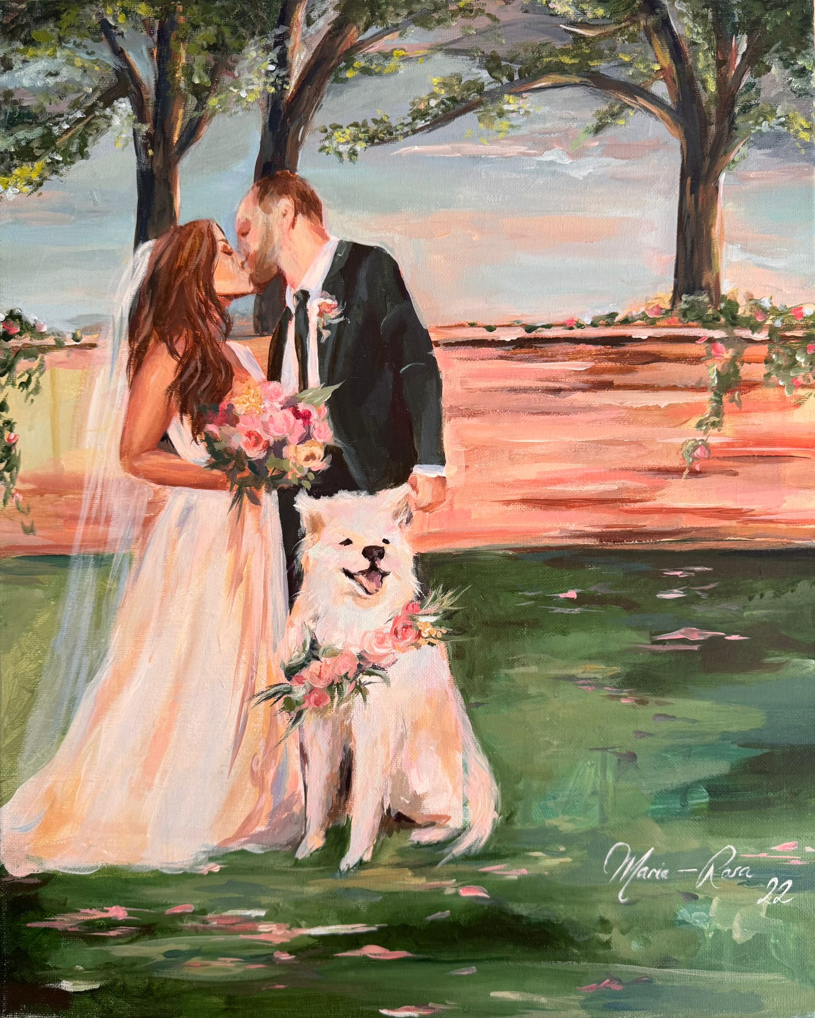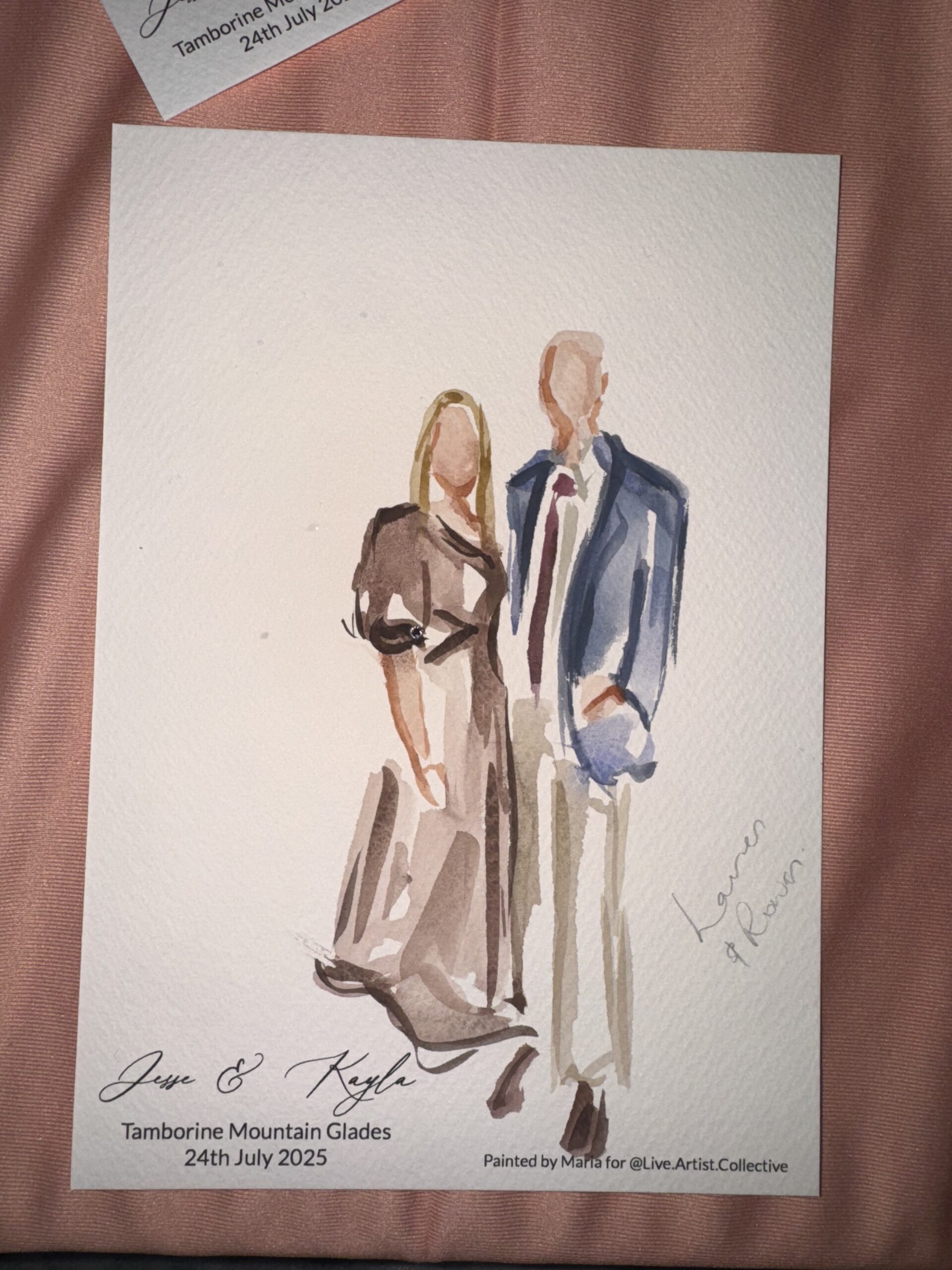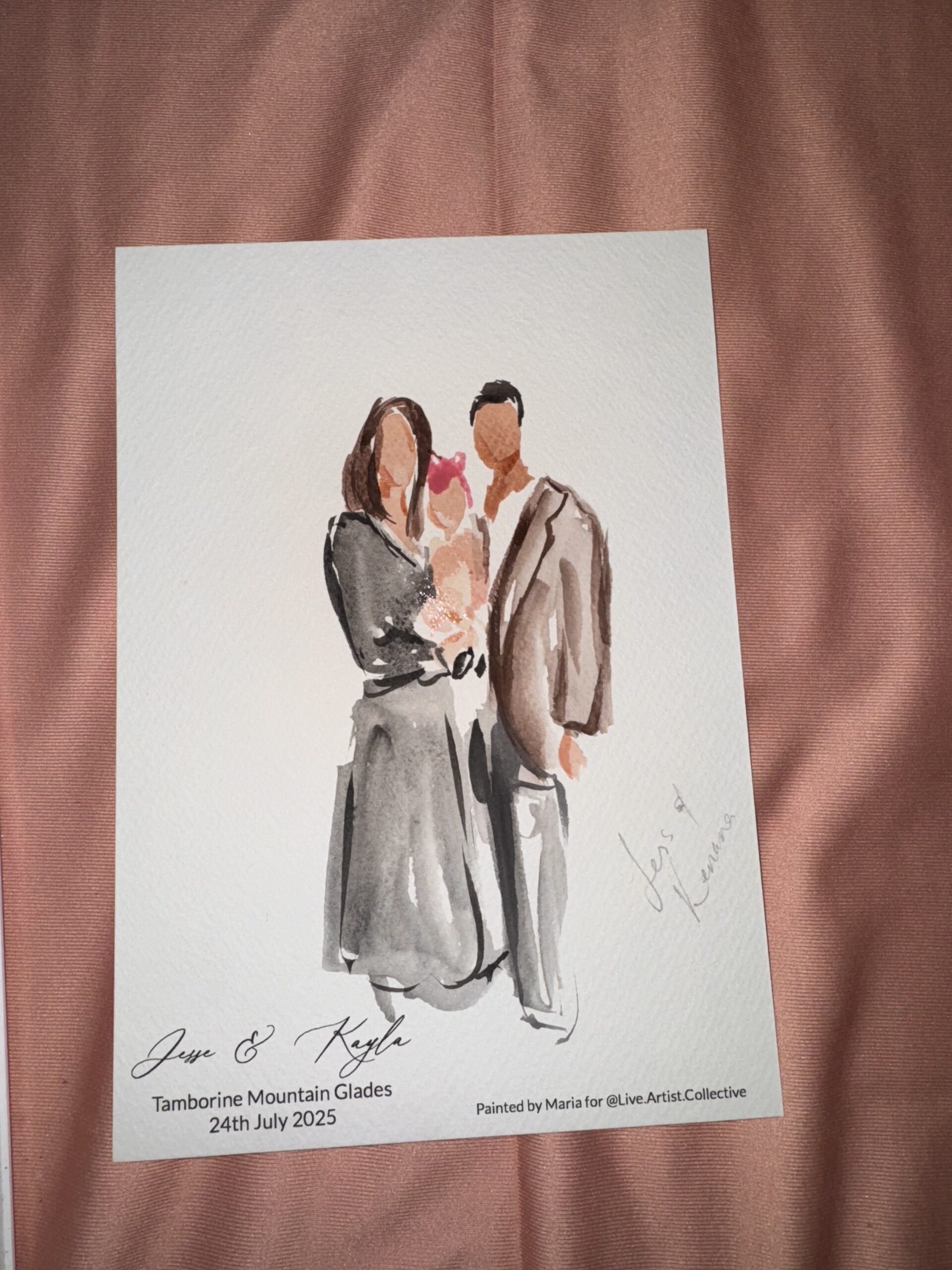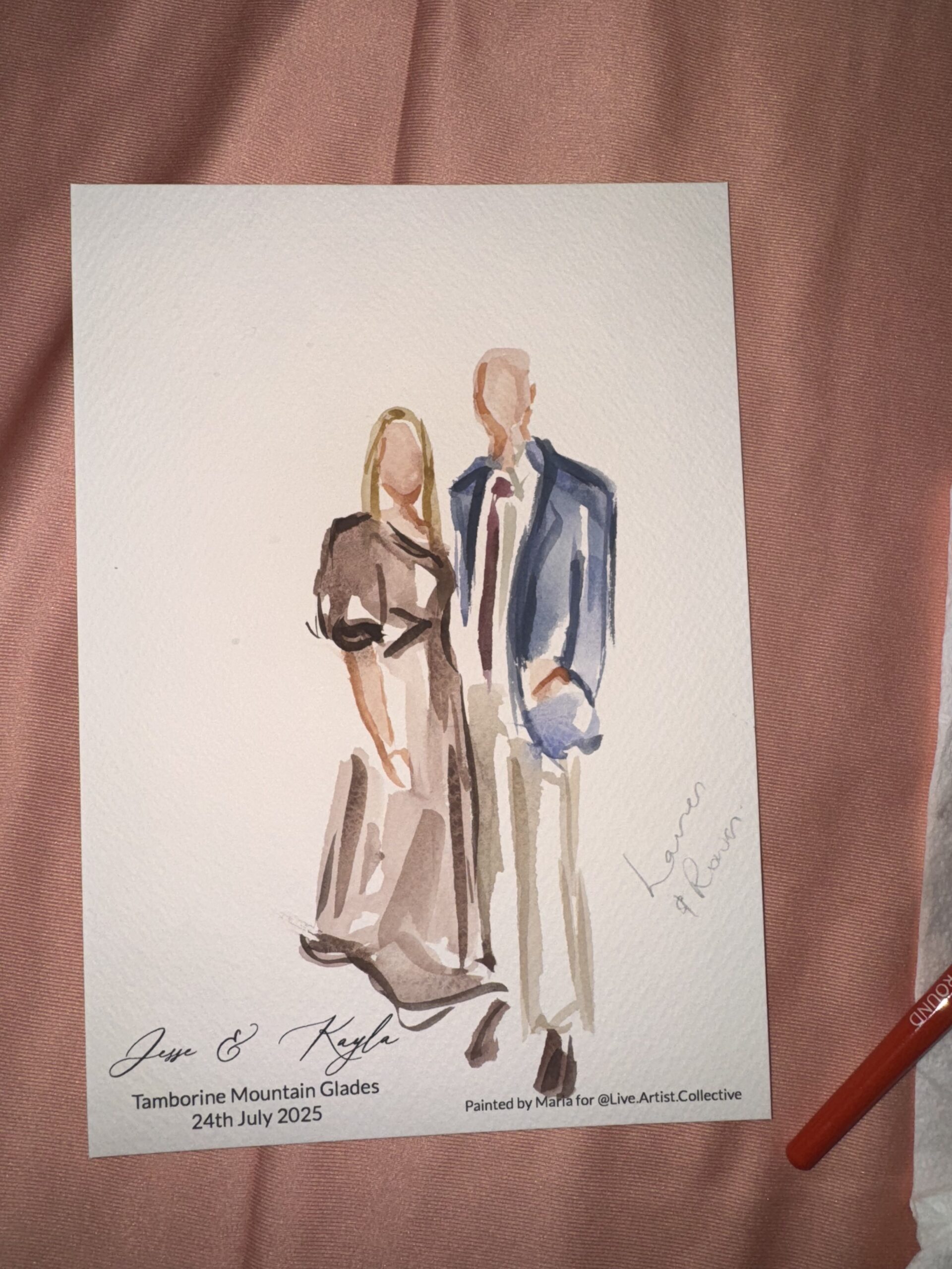 Maria creates live painting, live guest portraits, custom portraits and even stationery.