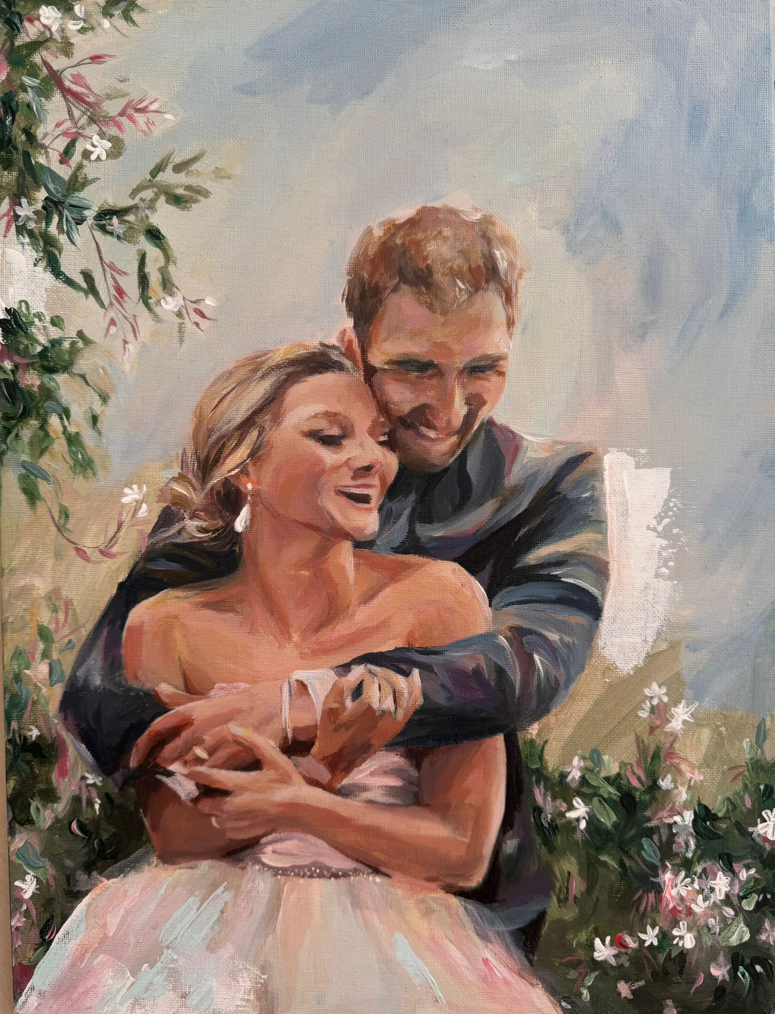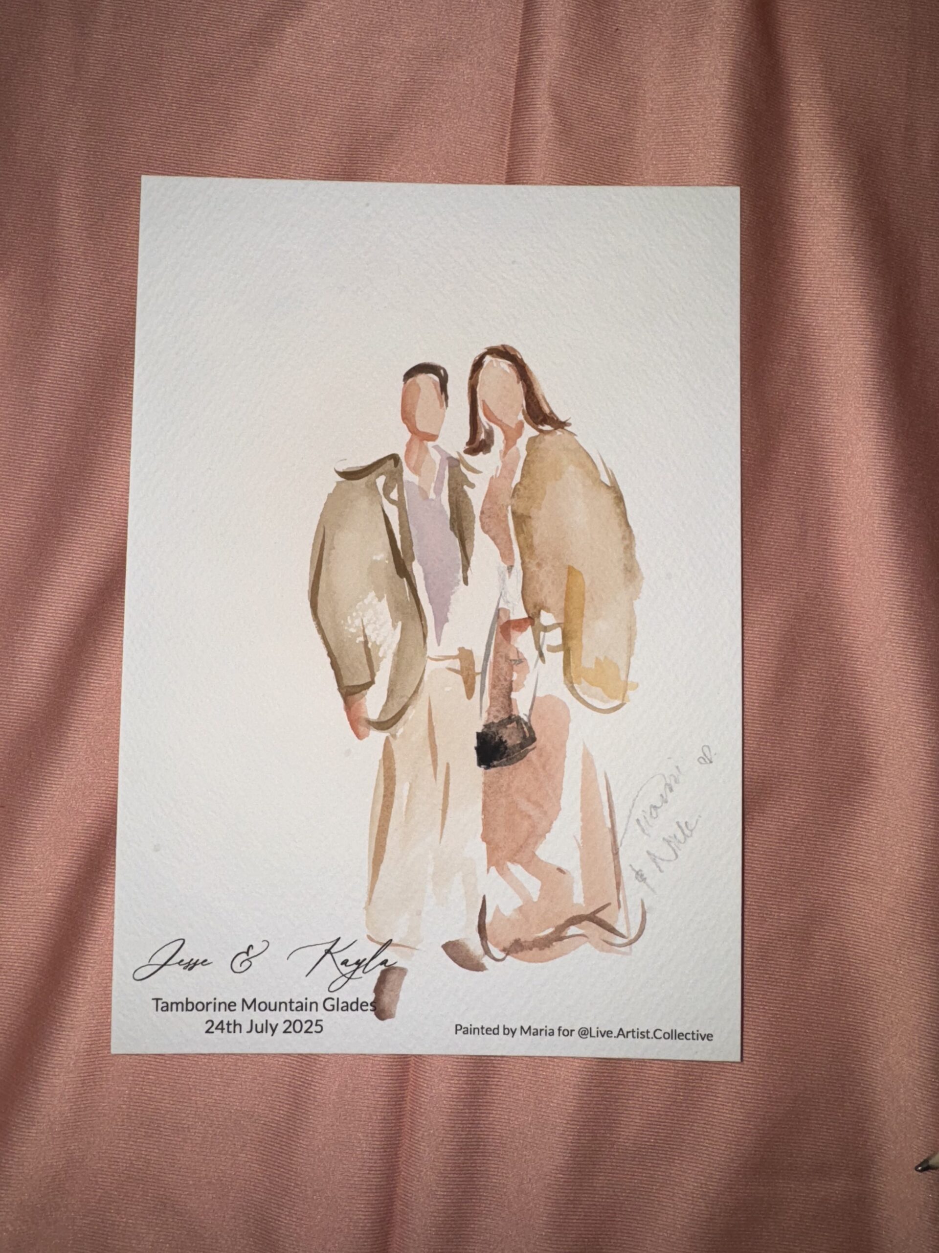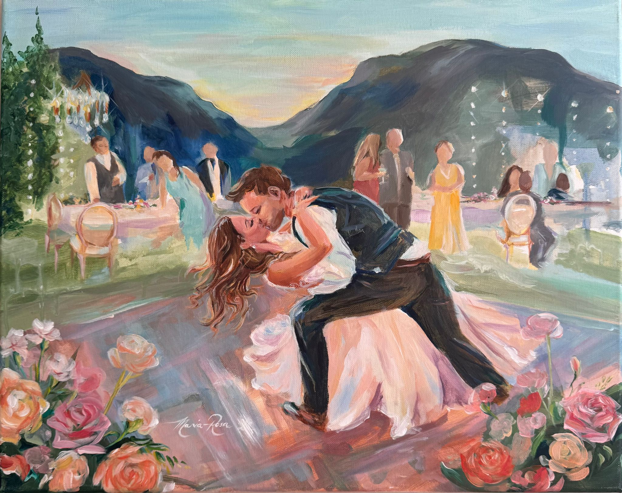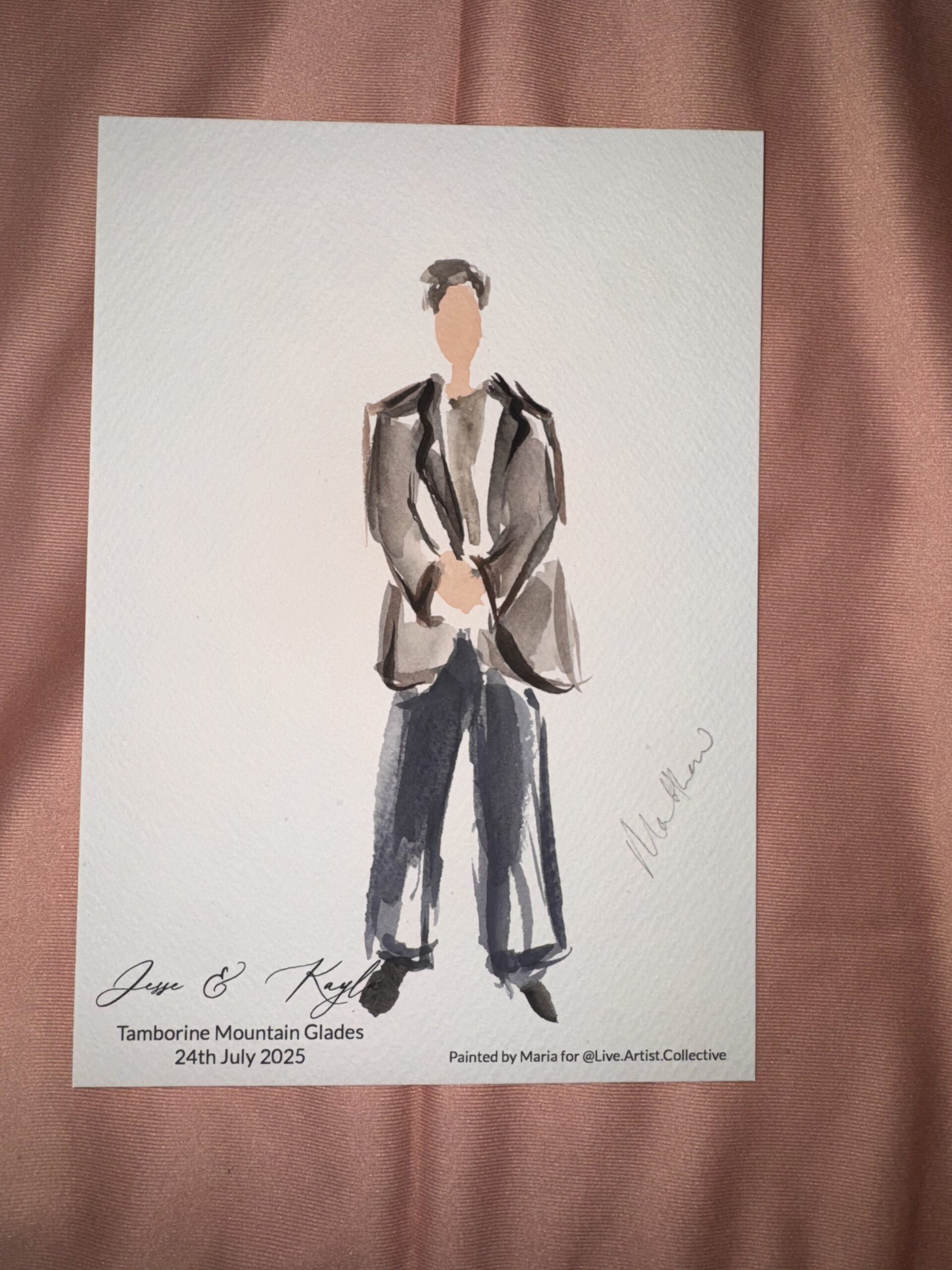 Maria creates live painting, live guest portraits, custom portraits and even stationery.