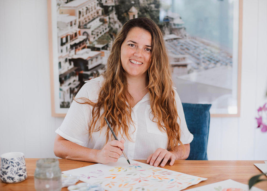 Maria paints with a soft, loose style, favouring gentle colours, abstract florals which creates a dreamy and romantic style.